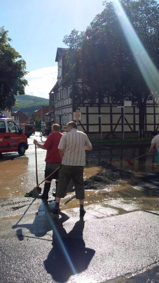 | Bericht: | Zu insgesamt 10 Einsätzen ist die Feuerwehr am Freitag ausgerückt. Die Aufgaben zu diesem Tage waren hauptsächlich das Auspumpen von Kellern, so wie das Freiräumen und Schaufeln von Einläufen. Zur Unterstützung wurden die Feuerwehren Gieselwerder und Gottstreu alarmiert. Nach etwa 3 Stunden konnten wir wieder abrücken. Am Freitag fielen in Oedelsheim laut Regenmesser über 50mm innerhalb einer halben Stunde. Vielen Dank auch an alle freiwilligen Helfer, die uns tatkräftig unterstützten. |