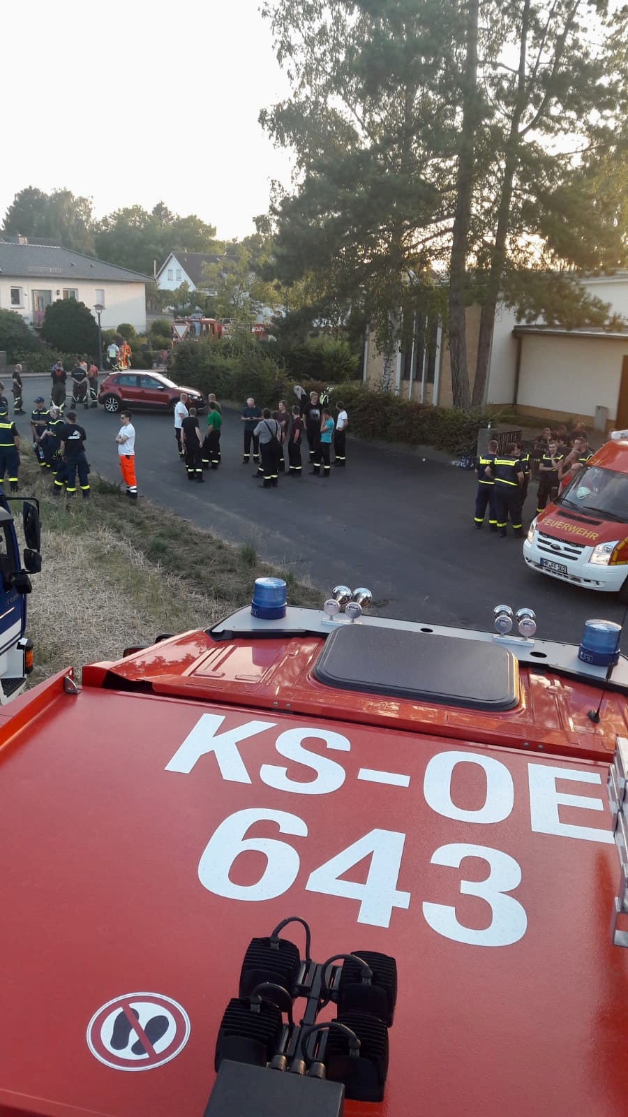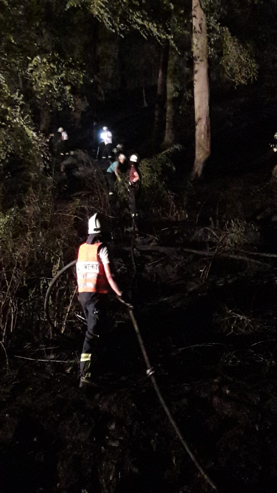 Gegen 17:30 wurde der Katastrophenschutz-Löschzug Oberweser-Wahlsburg (gestellt von den Feuerwehren Oedelsheim und Lippoldsberg sowie dem Einsatzleitwagen Oberweser) zu dem Waldbrand bei Rengershausen bzw. Dittershausen alarmiert. Der Zug wurde gebildet und rückte gegen 18:00 Uhr aus. Zunächst wurde der Bereitstellungsraum in Rengerhausen angefahren. Vor da aus wurden wir zum Einsatz abgerufen. Es galt die Feuerwehr Baunatal bei der Wasserentnahme aus der Fulda abzulösen. Noch freie Kameraden wurden dann zur Bekämpfung von Glutnestern direkt an der Brandstelle eingesetzt. Schon die Anfahrt gestaltete sich schwierig. Die Brandstelle war nur über einen extrem steilen Pfad oder über die gesperrte Bahnstrecke Kassel-Guntershausen zu erreichen. Wir haben den sichereren Weg über die Bahnstrecke gewählt, wobei das benötigte Material über ca. 800 m auf einer Draisine zur Einsatzstelle gefahren werden musste. Dann begannen die anstrengenden Nachlöscharbeiten am abgerannten steilen Hang. Unterbrochen von einigen Pausen um erneut auf die Suche nach Glut zu gehen bzw. Bäume fällen zu lassen. Die Feuerwehr Baunatal übernahm gegen 08:00 Uhr wieder. Mit dem Einsatzbereitmachen der Fahrzeuge konnten wir unseren Einsatz am Dienstag gegen 10:00 Uhr beenden.