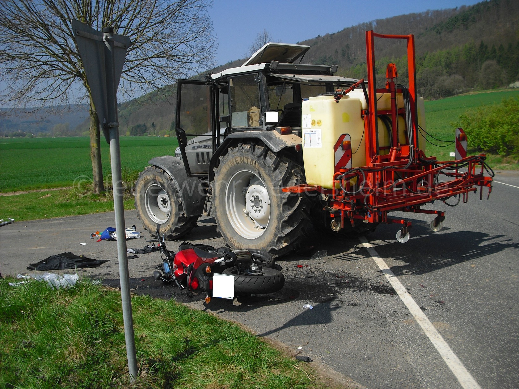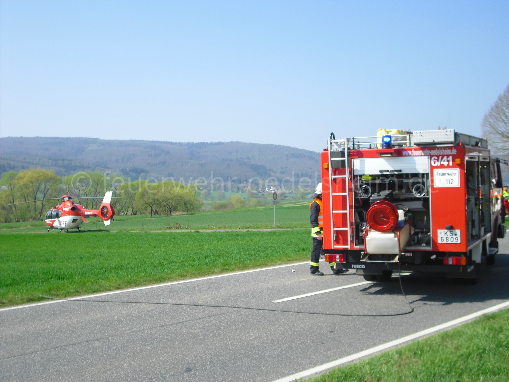 | Bericht: | Vermutlich bei einem Überholmanöver ist am Sonntagmittag ein Motorradfahrer mit einem abbiegenden Traktor zusammengestoßen. Nach Eintreffen an der Einsatzstelle wurde der Brandschutz sichergestellt, die Straße gesperrt und dem Rettungsdienst beim Transport der verletzten Personen geholfen. Der Motorradfahrer ist schwerverletzt mit dem Rettungshubschrauber zum Krankenhaus transportiert worden – Beifahrerin, so wie der Traktorfahrer mit zwei Rettungstransportwagen. Traktor und Motorrad wurden vom Abschleppdienst übernommen und abtransportiert. |