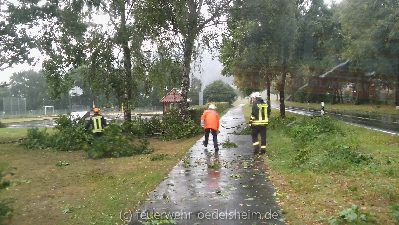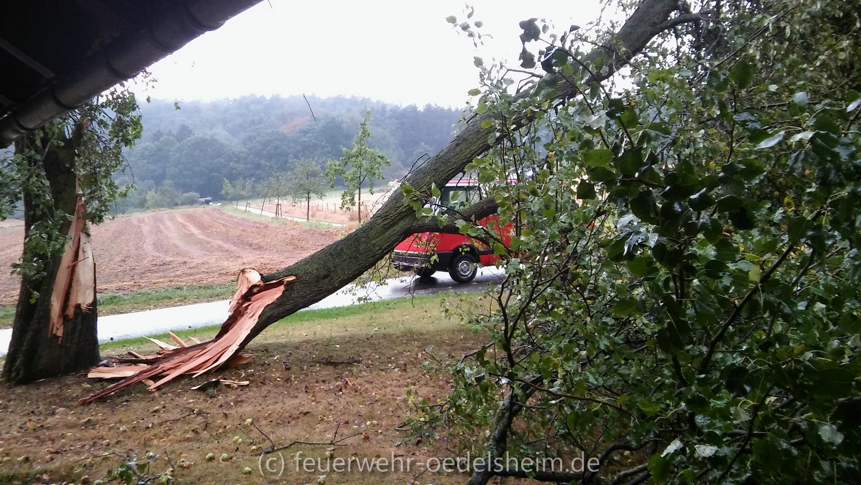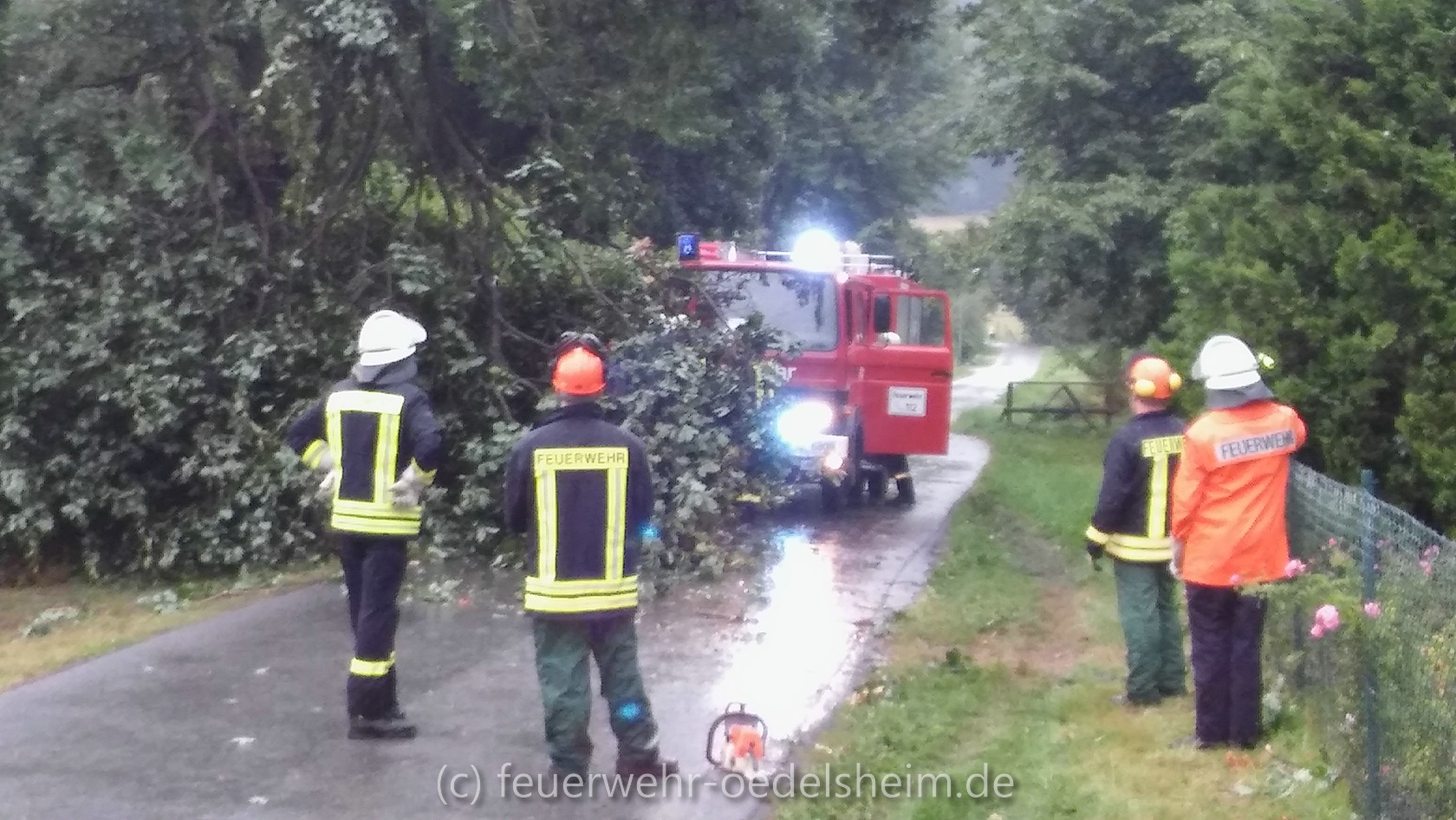 Bericht: | Nach heftigem Starkregen mit Sturmböen mehrere Bäume und Geäst auf den Straßen beseitigt. |
