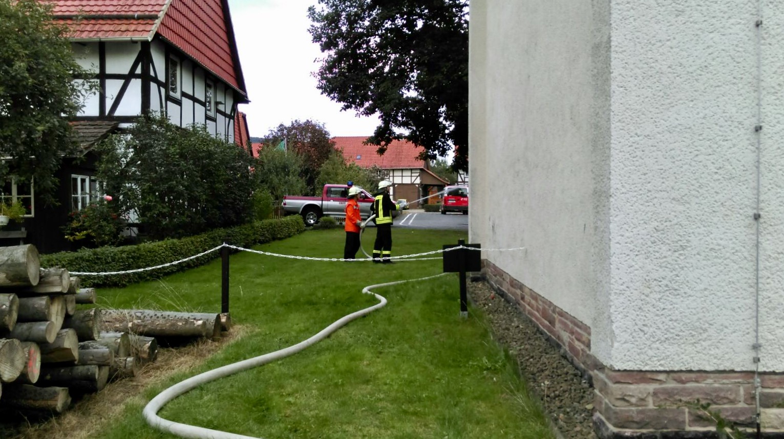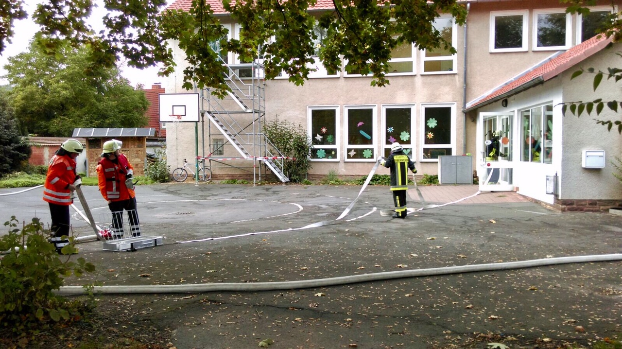 Am vergangenen Samstag, den 08.10.2016 übten wir gemeinsam mit der Freiwilligen Feuerwehr Hemeln den angenommenen Brand einer Grundschule mit vermissten Personen im Gebäude. Neben dem Retten und Löschen, wurde auch auf die Kommunikation ein Augenmerk gelegt. Da wir grenzüberschreitend agieren (Hessen -> Niedersachsen) und dort nur digital im DMO (Digitalfunk, Direkt-Modus) gefunkt werden kann, war dies eine erste Hürde, die genommen werden musste. Hierbei gab es allerdings keine Probleme und so funktionierte die Verständigung aller Einsatzkräfte problemlos.