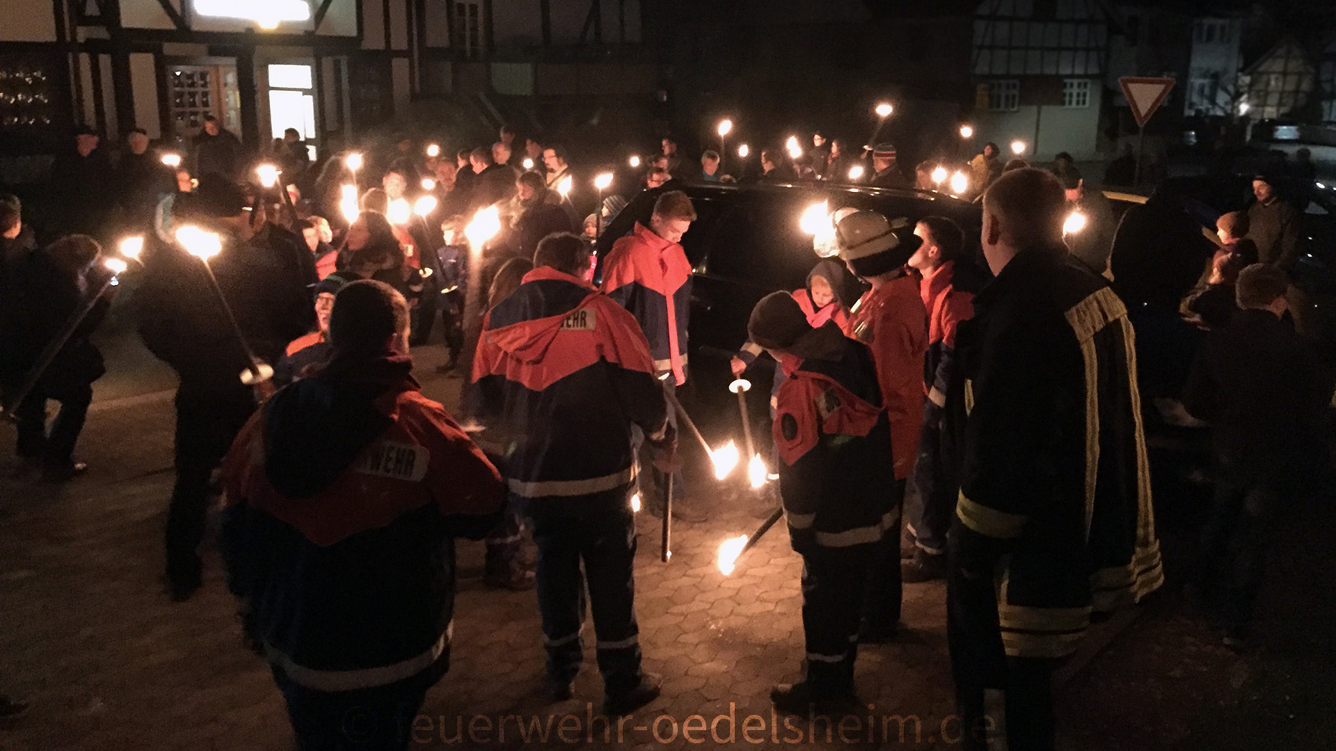 Los ging es um 19:30 Uhr mit dem Fackelverkauf und anschließendem -zug zum Osterfeuer, das am Vormittag errichtet wurde. Für das leibliche Wohl wurde mit frisch gegrillter Bratwurst gesorgt. An dem Getränkestand löschte die Feuerwehr den Durst der Gäste.