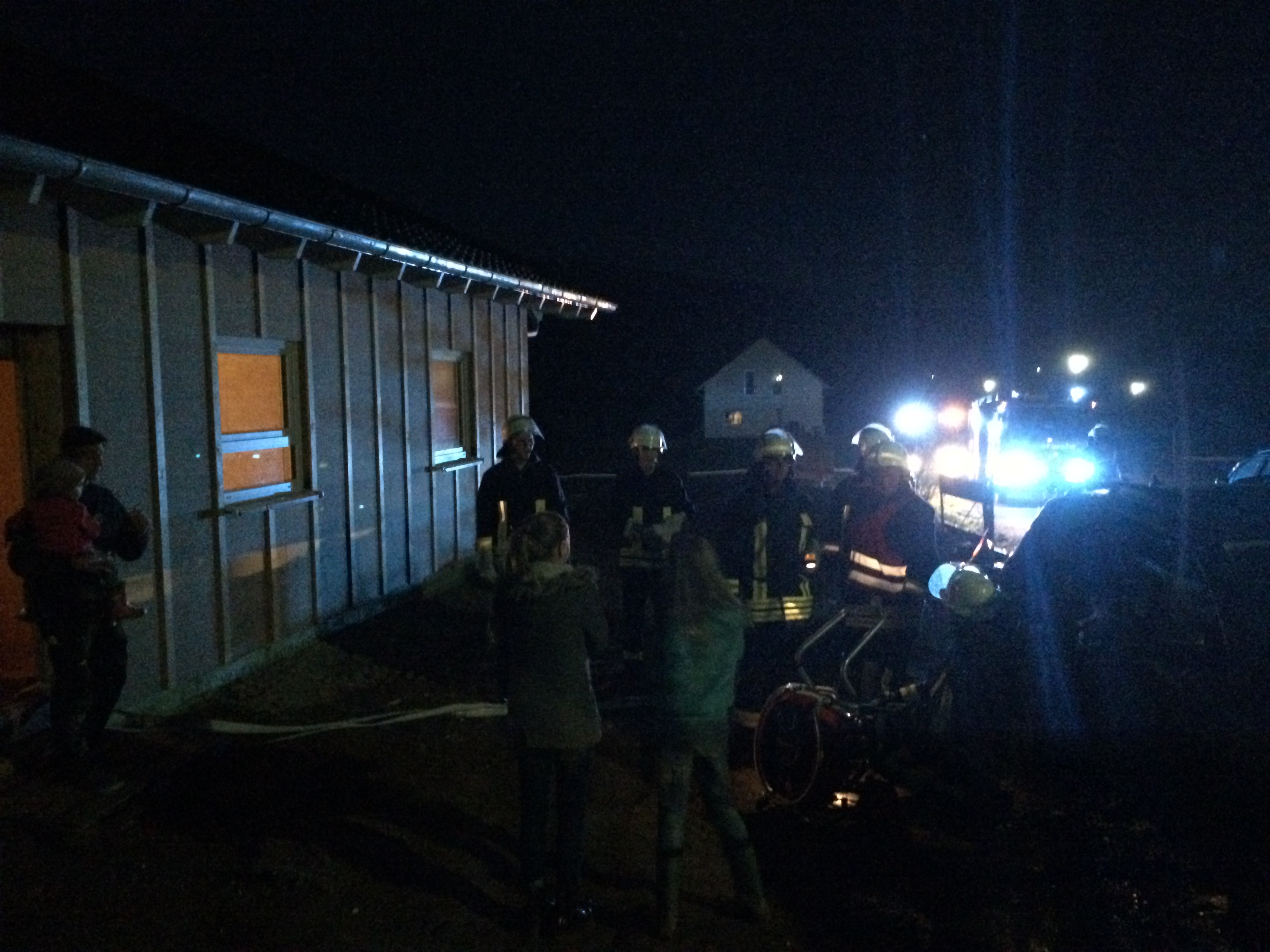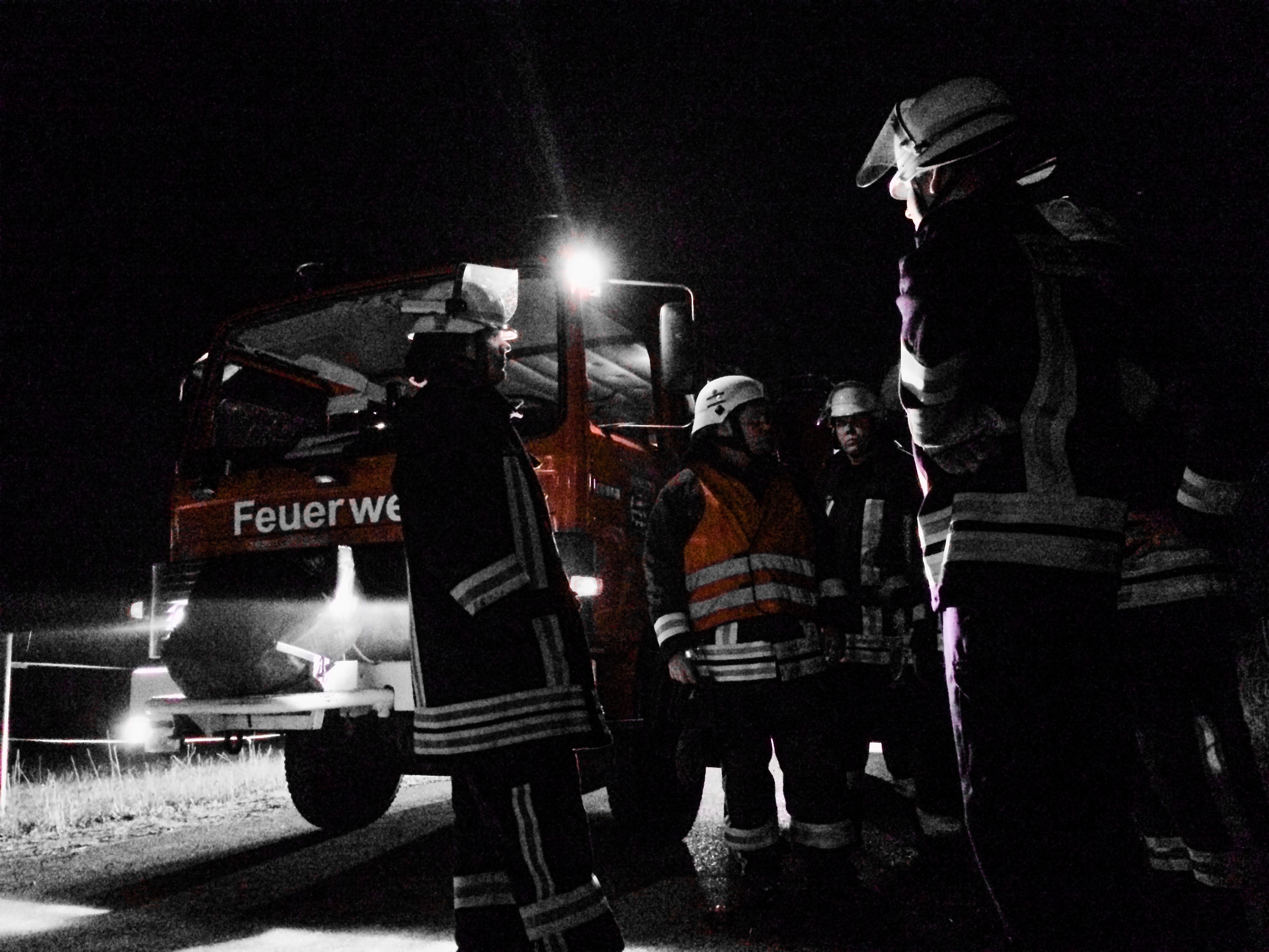 Angenommen wurde ein Brand in einem Neubau. Der Angriffstrupp begab sich zur Menschenrettung mit WBK (Wärmebildkamera) und erstem Rohr ins Gebäude. Zwei Personen wurden schnell in Sicherheit gebracht und das Feuer imaginär gelöscht.